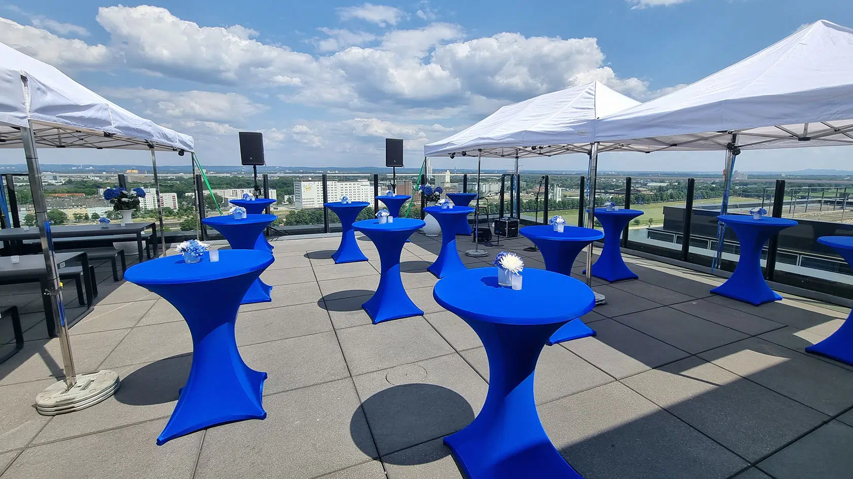 Die kennen wir bei der EVENTAGENTUR artimage genauso gut wie die Bauanleitung. Wir beachten beim Aufbau Fluchtwege, bringen Feuerlöscher an und sorgen für Notbeleuchtung. Wir werden selbst zu „fliegenden Architekten“ und schaffen mit Zelten flexible Raumerweiterungen für Garderobe, Check-in, Lounge oder Buffet.